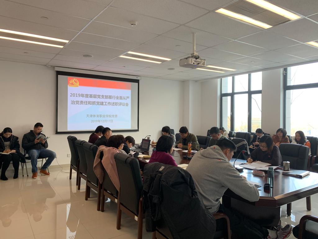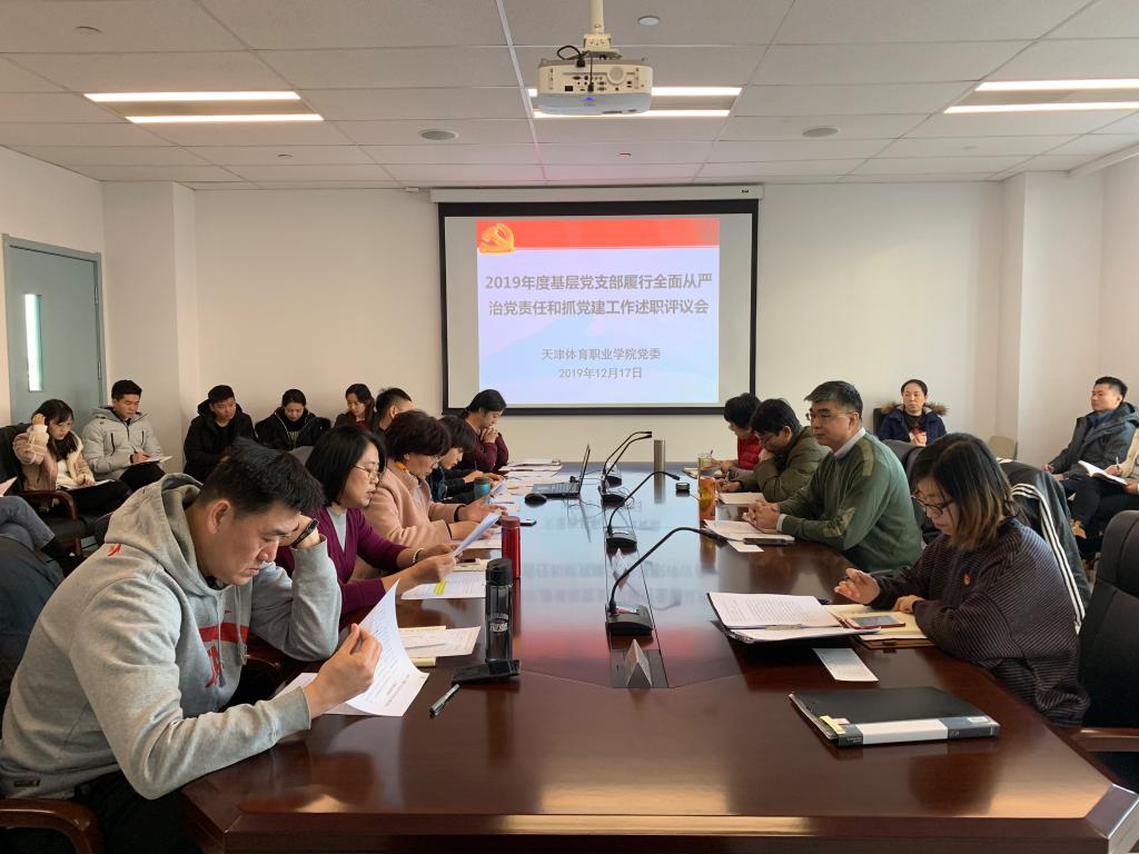 2019年12月17日上午,体职院在二楼会议室召开2019年度基层党支部履行全面从严治党责任和抓党建工作述职评议会,学院领导班子成员、各基层党支部书记、系部负责人及部分党员代表参加了会议。