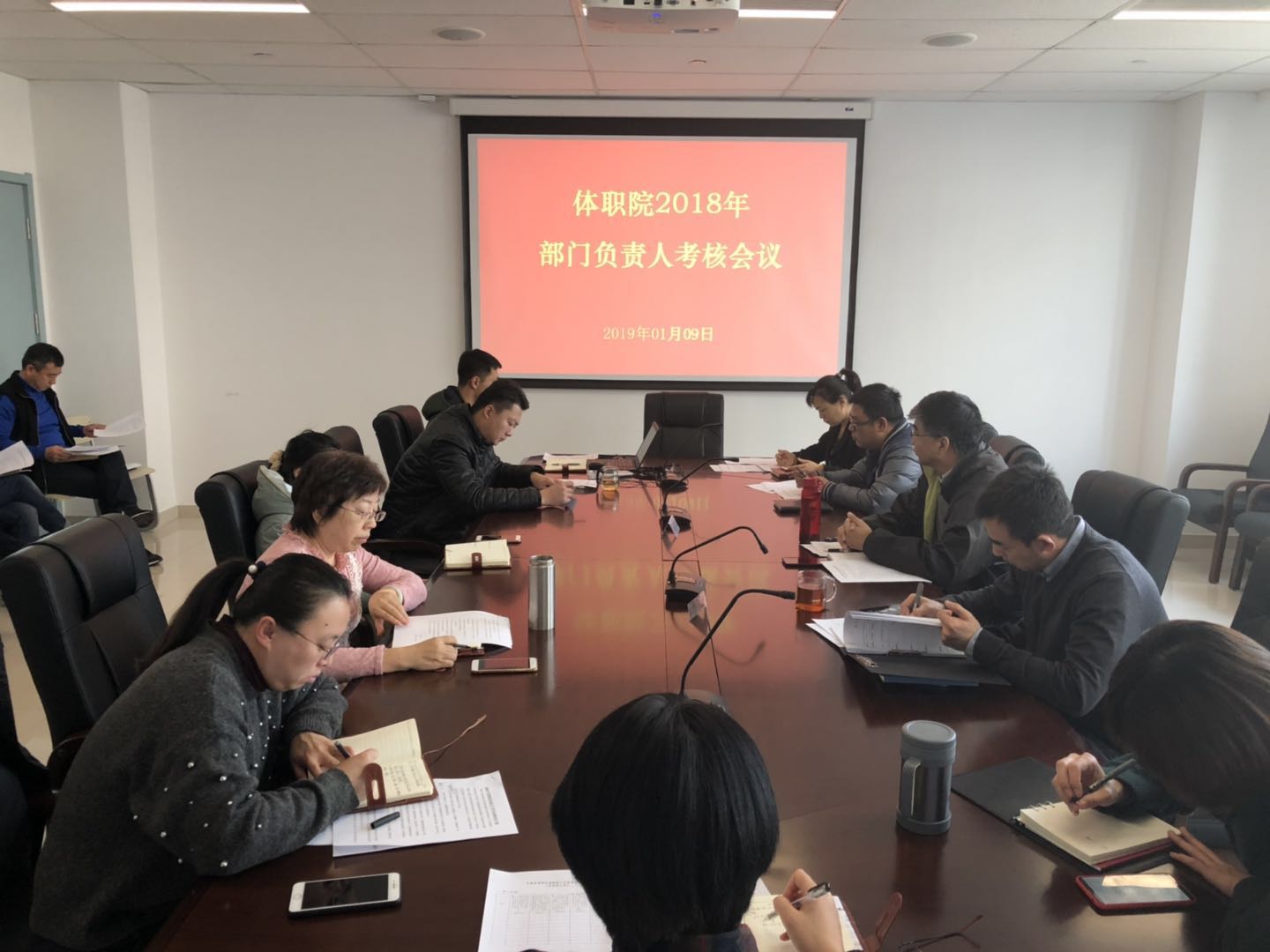 2019年1月9日下午,体职院在二楼会议室召开2018年度考核会议,院党委书记王伟🧎♂️➡️、院党委副书记、院长刘钦龙、副院长魏秋月🏄♀️,各处室、系部负责人参会🧑🏿🍼。会议由人事部负责人主持。