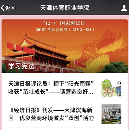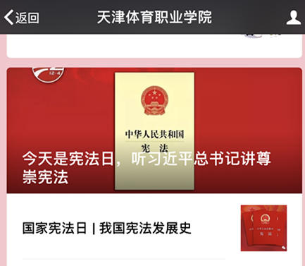 为深入贯彻党的十九大精神和全国教育大会精神,认真落实中央关于学习宣传和贯彻实施宪法的决策部署,按照市教委下发的《市教委关于开展2018年教育系统国家宪法日主题教育活动的通知》和市体育局下发的《关于组织开展2018年“12•4”国家宪法日法治宣传活动的通知》要求,学院组宣部积极落实宪法日活动宣传工作。