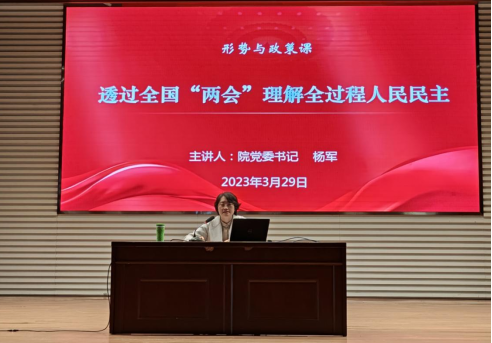 为全面贯彻落实党的教育方针🚞🍂,坚持书记🌨、校长带头讲思政课落实立德树人根本任务的工作机制,3月29日下午,我院党委书记杨军以《透过全国两会理解全过程人民民主》为题,面向学校师生开讲形势与政策课😾。