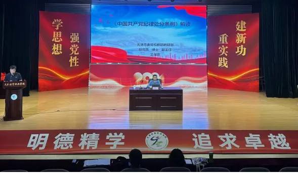 为推进落实中央关于在全党开展党纪学习教育的重大部署,教育引导学院广大党员干部深入学习贯彻《中国共产党纪律处分条例》,始终做到学纪、知纪、明纪、守纪🦸🏿,切实把党纪学习教育成效转化为学院高质量发展成果🧑🏻⚖️,结合学院党纪学习教育大讲堂集中学习,体职院邀请市委党校王保彦教授7月11日莅临学院,对《条例》进行权威宣传解读和政策辅导。学院党政主要负责同志、全体党员干部参加了此次培训,党委委员、副院长潘政彬主持会议。