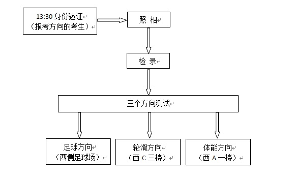 4)专业考试时间:下午14:00  运动训练(足球、轮滑)、体育保健与康复专业(体能训练方向)【13:30分验证、拍照】
